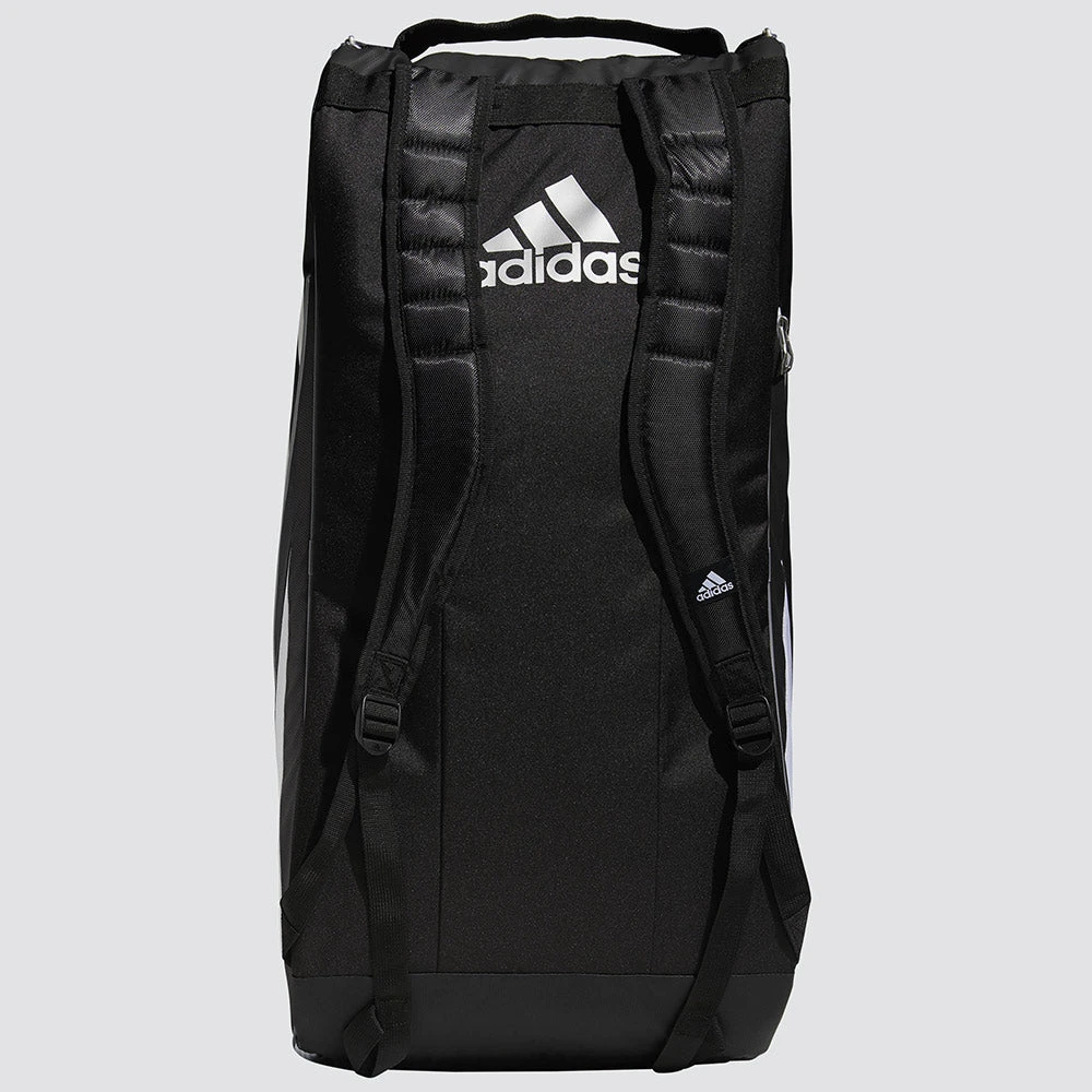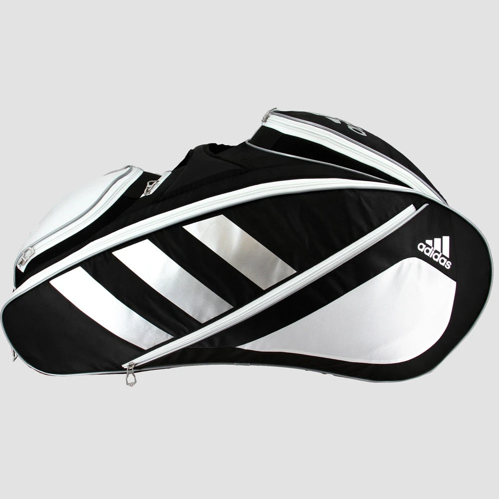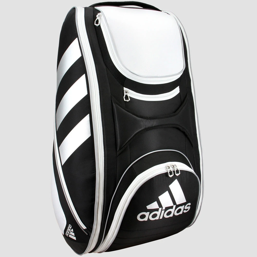 The adidas Tour Team 12 Pack Bag is an ultra spacious carrying system for taking your gear to and from the tennis courts. This spacious bag features specialized compartments designated for up to twelve of your favorite tennis racquets, accessories, and even a pair of shoes. With the hydroshell water resistance base, it will be a much easier task to keep your items dry and clean. This bag can be carried comfortably with the padded backpack straps or by the convenient handle.