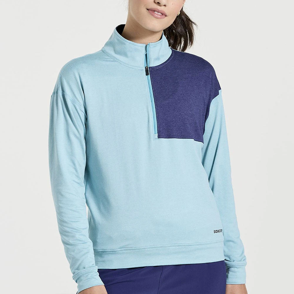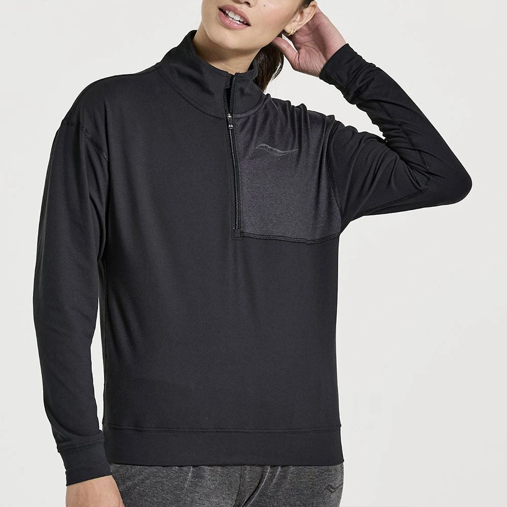 Go from couch to 5K in the Saucony Sunday 1/4 Zip! Soft-brushed and luxuriously cozy, this quarter-zip is great for warmups and lounging around, but can also handle high-intensity workouts.