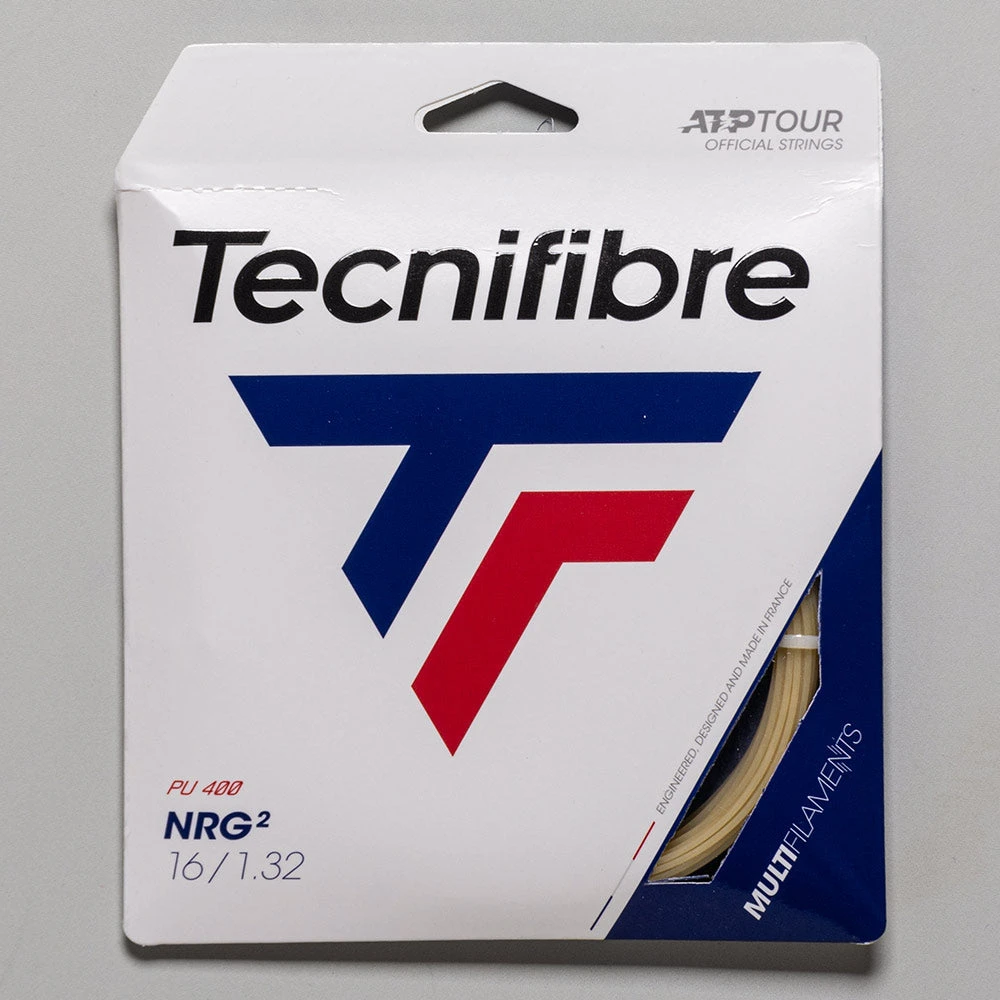 Tecnifibre NRG2 16 tennis string is designed for maximum power with maximum feel through the use of PU and Elastyl® fibers with an SPL coating. This string uses PU (the same material used for cushioning in your shoes) to dampen shock for a soft, comfortable feel. Whether you suffer with arm pain, or you’re just looking for a powerful, playable string, this is a must-try.