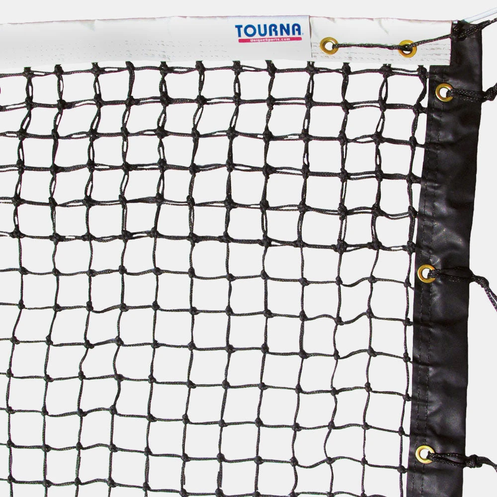 The Tourna 3.0mm Double Net offers premium materials for maximum durability for longterm usage. This double net features 7 braided rows at the top and 4 rows of polyester stitching. Specialized UV and mildew inhibiting treatments have been applied to the bottom tape and headband of this net. Half inch thick fiberglass side sticks are designed to prevent any warping.