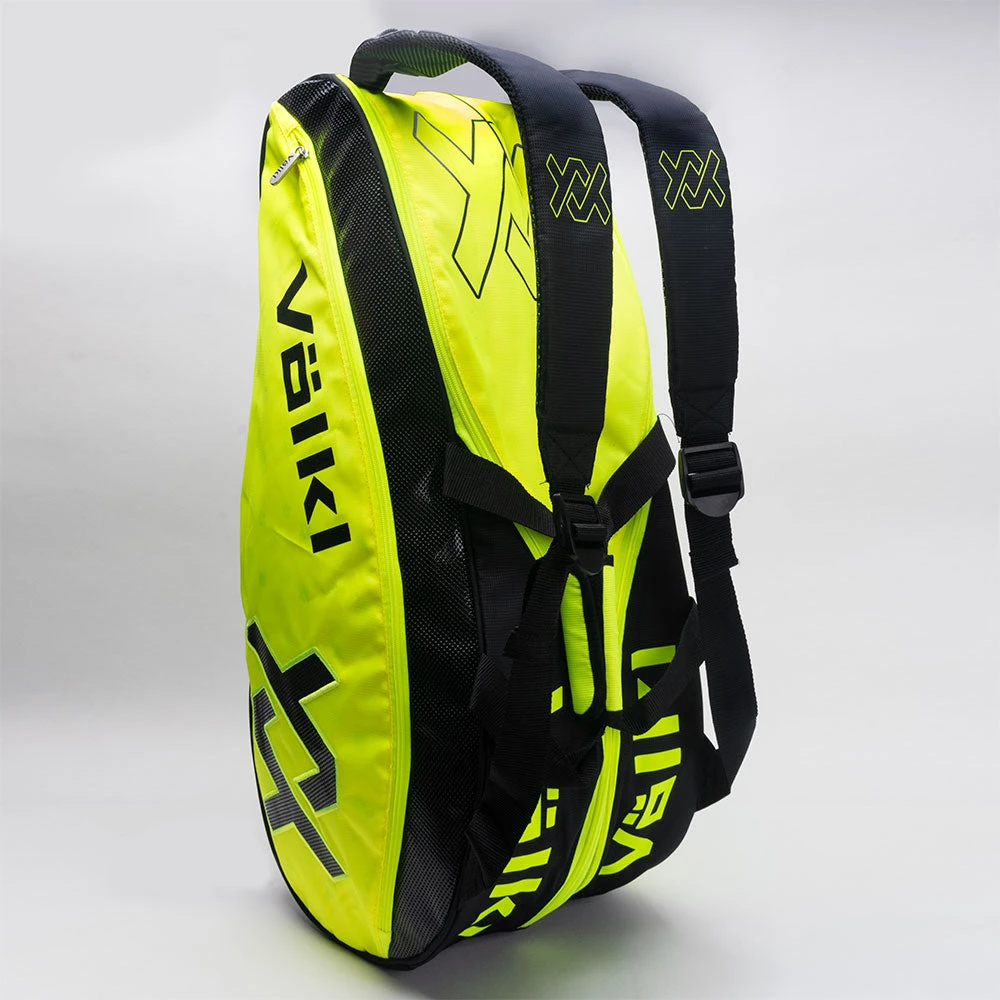 The Volkl Tour Combi Bag is ideal for players who carry multiple racquets to the match. Fit up to six racquets in the large main compartments–one with climate control for weather protection. Find a home for the rest of your gear in the two front pockets. The padded adjustable backpack straps offer comfortable carrying options as you take the court.