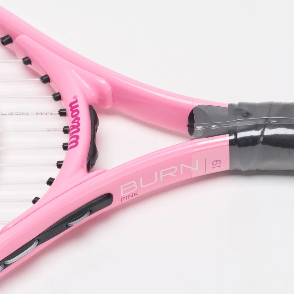 Lightweight and durable, the Wilson Burn Pink 19″ brings the power for young tennis players learning the game. With a fun design that lights up the court, this junior tennis racquet comes pre-strung and ready to play. A bumper guard helps minimize damage when the racquet hits the court surface.