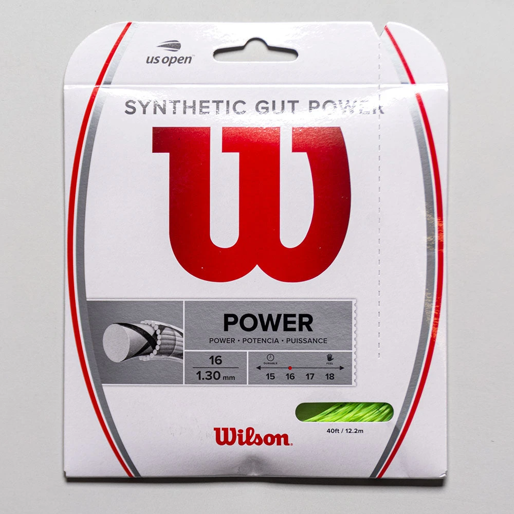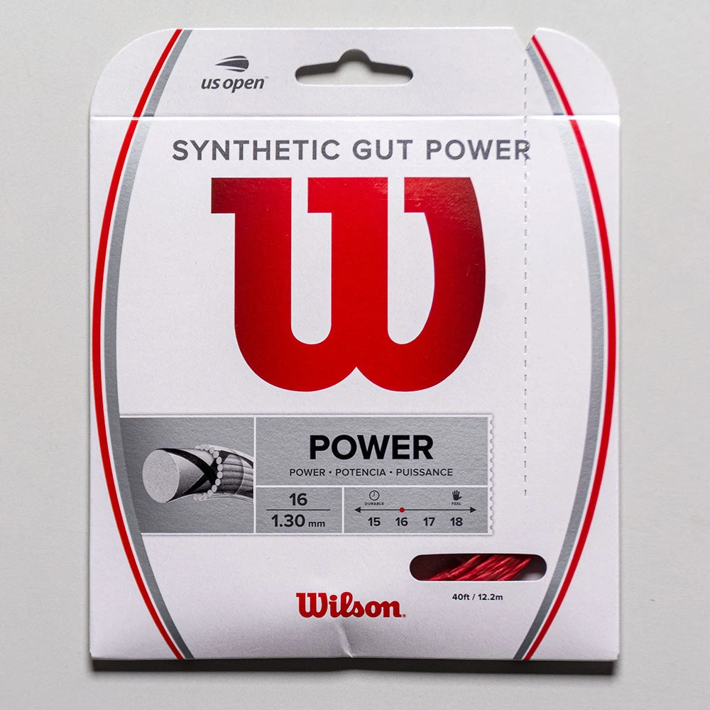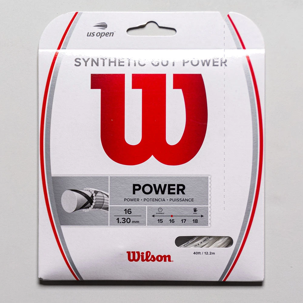 Wilson Synthetic Gut Power 16 tennis string combines durability and power. A high energy wrap contributes to the tough structure.