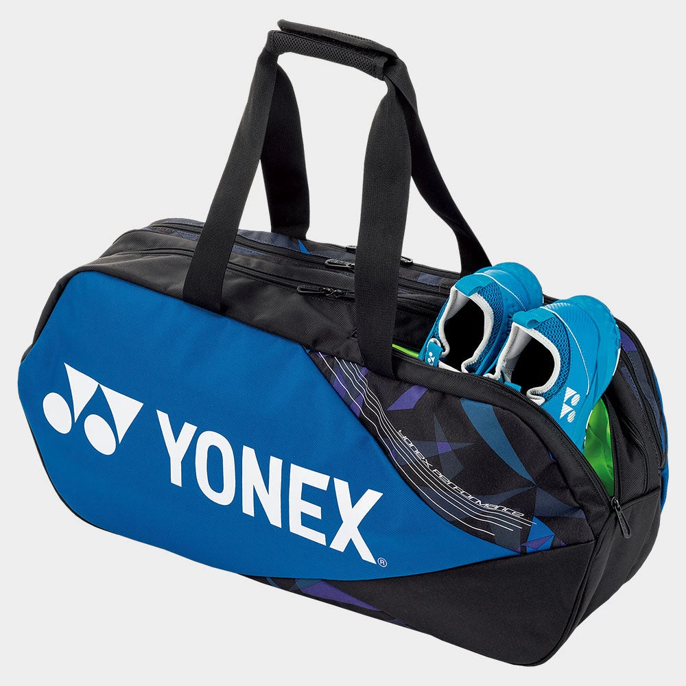 Bring everything you need to compete with the Yonex Pro Tournament Bag! Carefully crafted and thoughtfully designed, this multi-functional tennis bag is the perfect travel partner for weekend tournaments. Hold up to six racquets in the two large main compartments. Two large accessory pockets protect your valuables, while the shoe pocket keeps everything organized. Whether you’re training or traveling, the Yonex Pro Tournament Bag performs on and off the court.